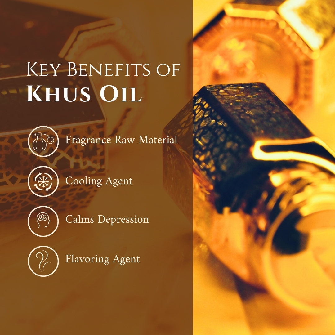Chemical Composition of Oil – Khusimol, Vetiveryl acetate, Vetivone, Eudesmol,